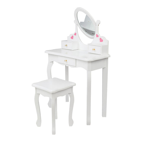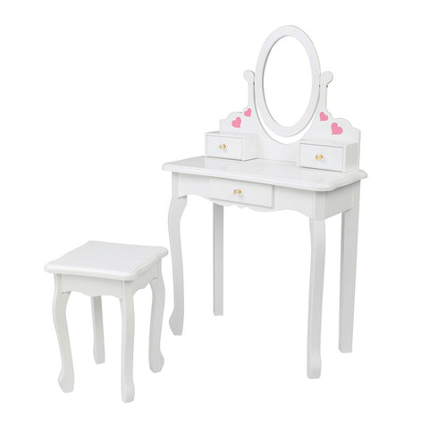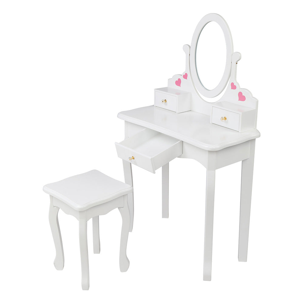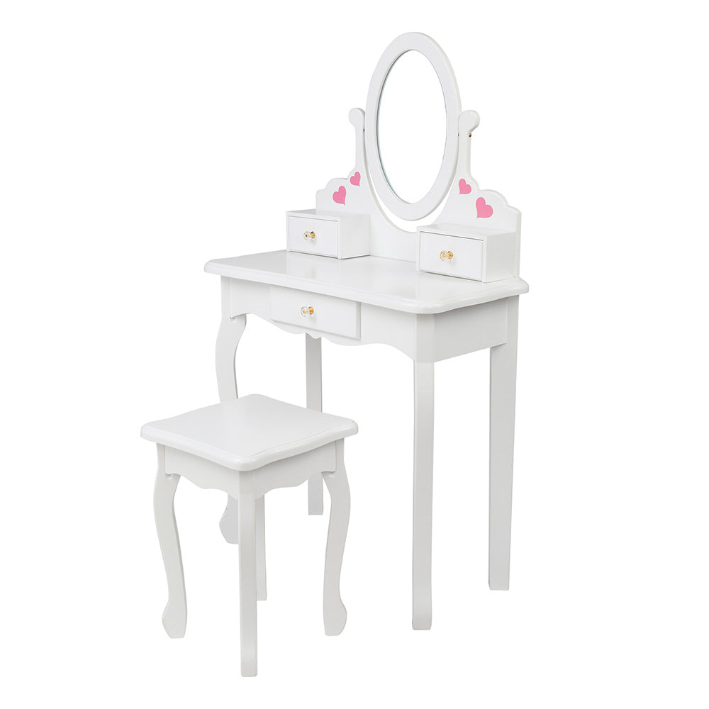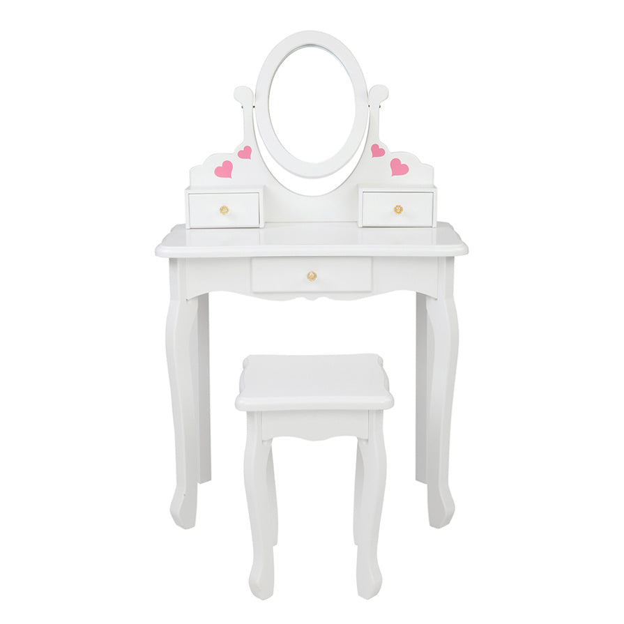 Children's Wooden Dressing Table Reversible Round Mirror Dressing Table Chair Three Drawers White 09401206