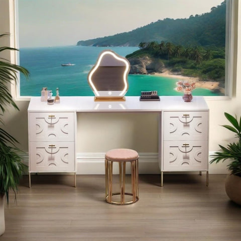 Ample & Organized Storage: This dressing table features four spacious drawers designed to efficiently store cosmetics, jewelry, hair accessories, and other beauty essentials. Smooth-gliding metal runners ensure quiet and effortless drawer operation
