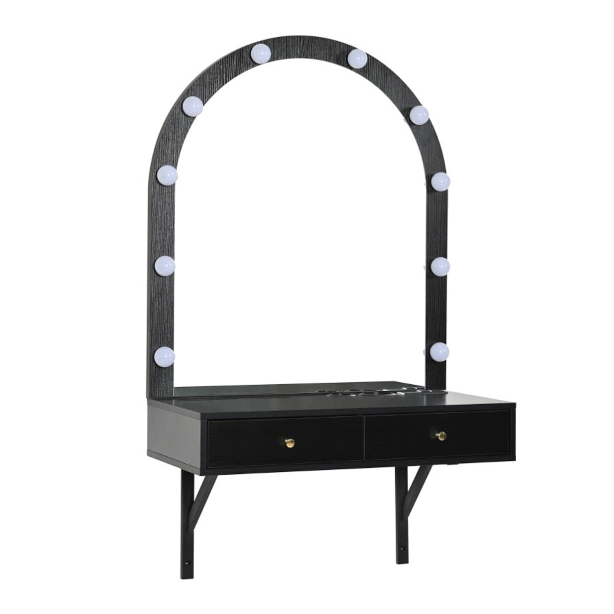 Floating Makeup Vanity Desk with Mirror & 3-Color Lights, Wall Dressing Table with Power Outlet, N844P263662B