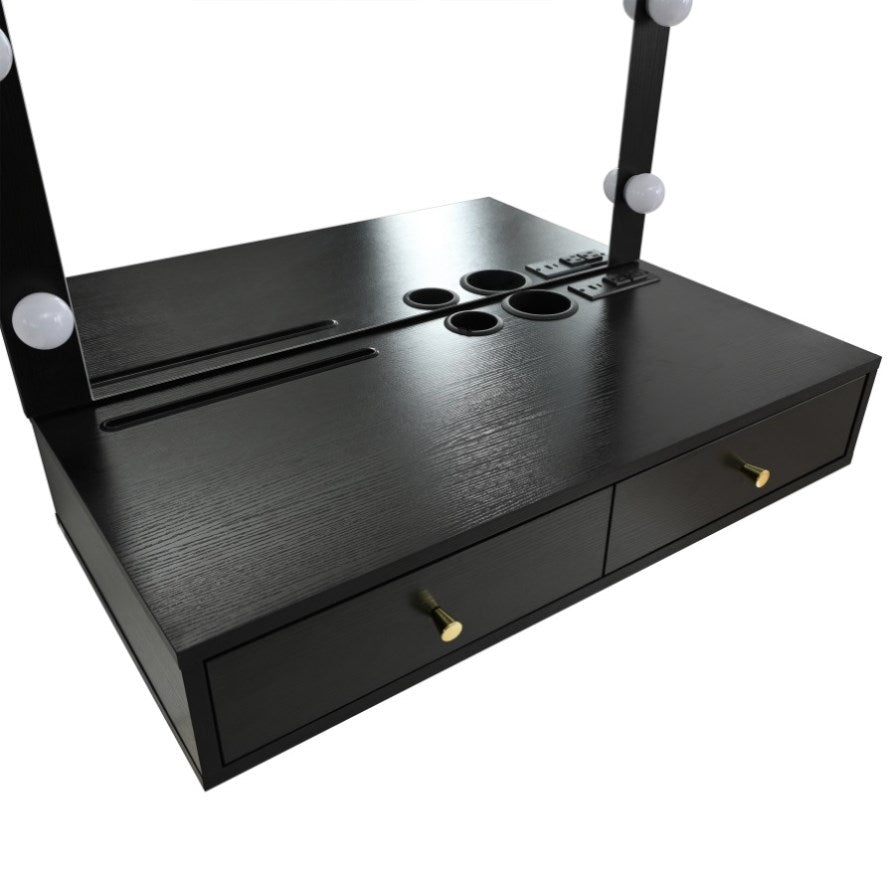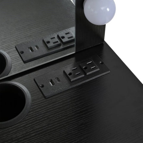 Convenient Charging Port: A charging port with 1 USB, 1 Type-C, and 2 outlets is conveniently located on the side of the table, allowing you to charge your mobile phone, hairdryer, and other devices while using the vanity.