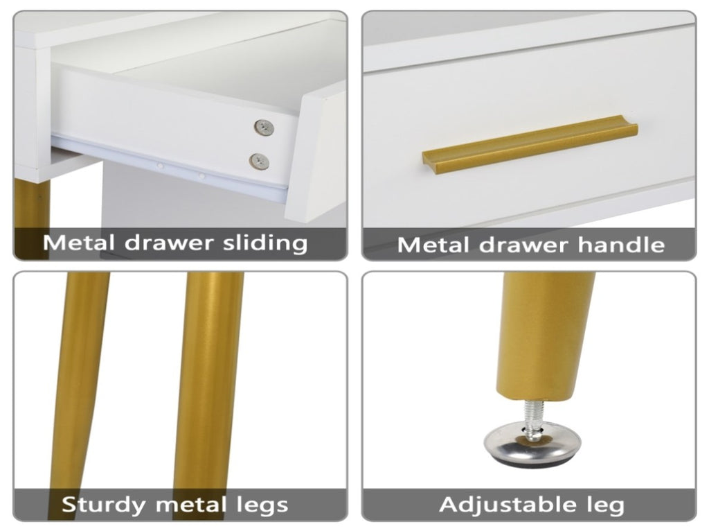 3. Higher level of craftsmanship and quality: Crafted from strong golden metal frame and top grade particle board, this makeup vanity with lights will serve you for years to come.