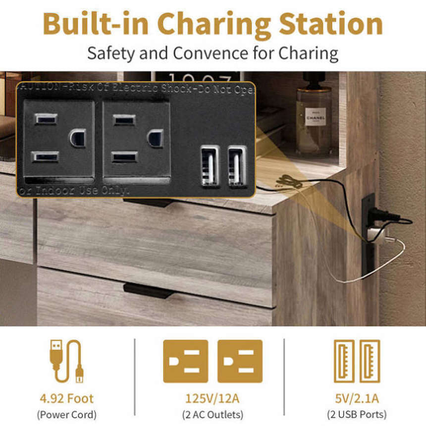3. Convenient Charging Station with USB Ports: The built-in power strip includes 2 standard plug sockets and 2 USB ports, making it easy to charge your devices or use your hair dryer and curling iron while seated at your vanity.