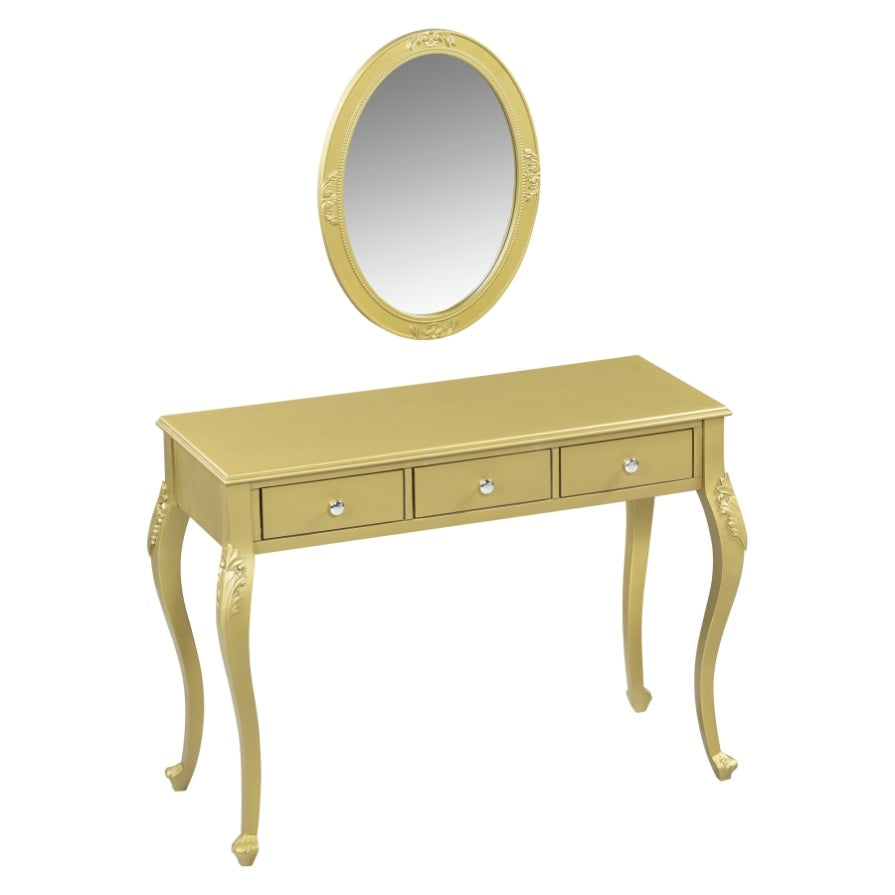 Luxury Makeup Vanity Desk with Oval Mirror, 3-Drawer Dressing Table for Jewelry Storage, Elegant N844P292481G