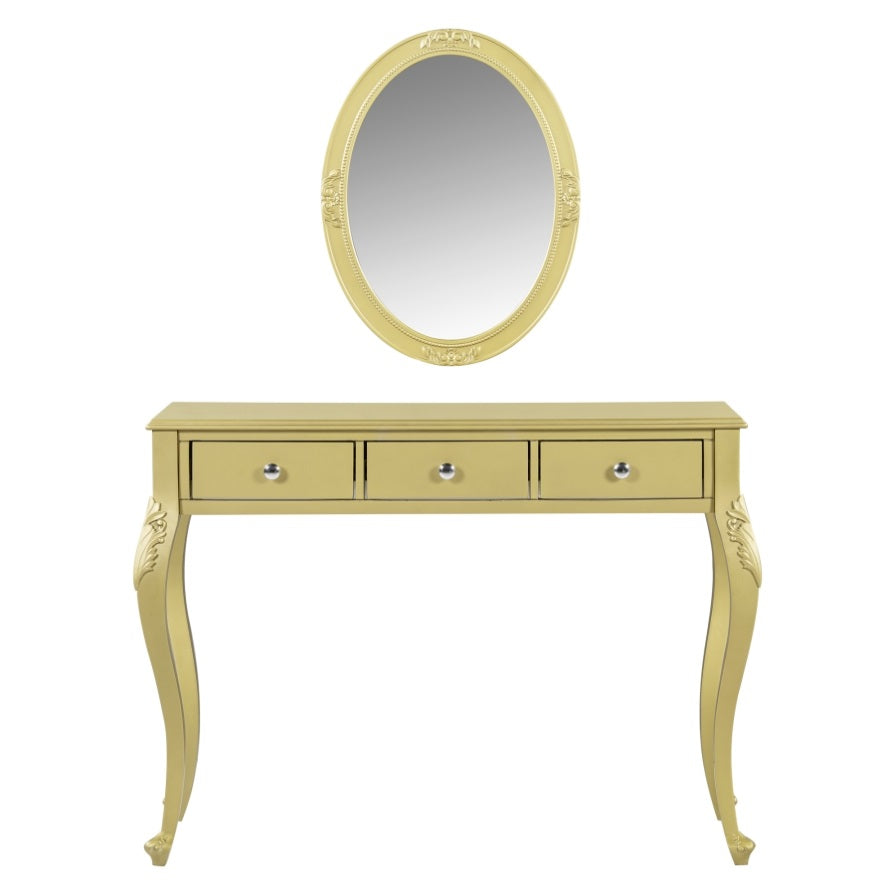 Unique Curved Oval Mirror:This vanity boasts a classic oval-shaped large mirror with intricate carvings on the frame. The eye-catching golden finish and timeless shape elevate the aesthetic appeal of your living space, making it a stylish centerpiece for your home decor.