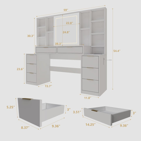Super Large Vanity Table with 8Drawers / Open Storage Shelves/ Brightness Adjustable/