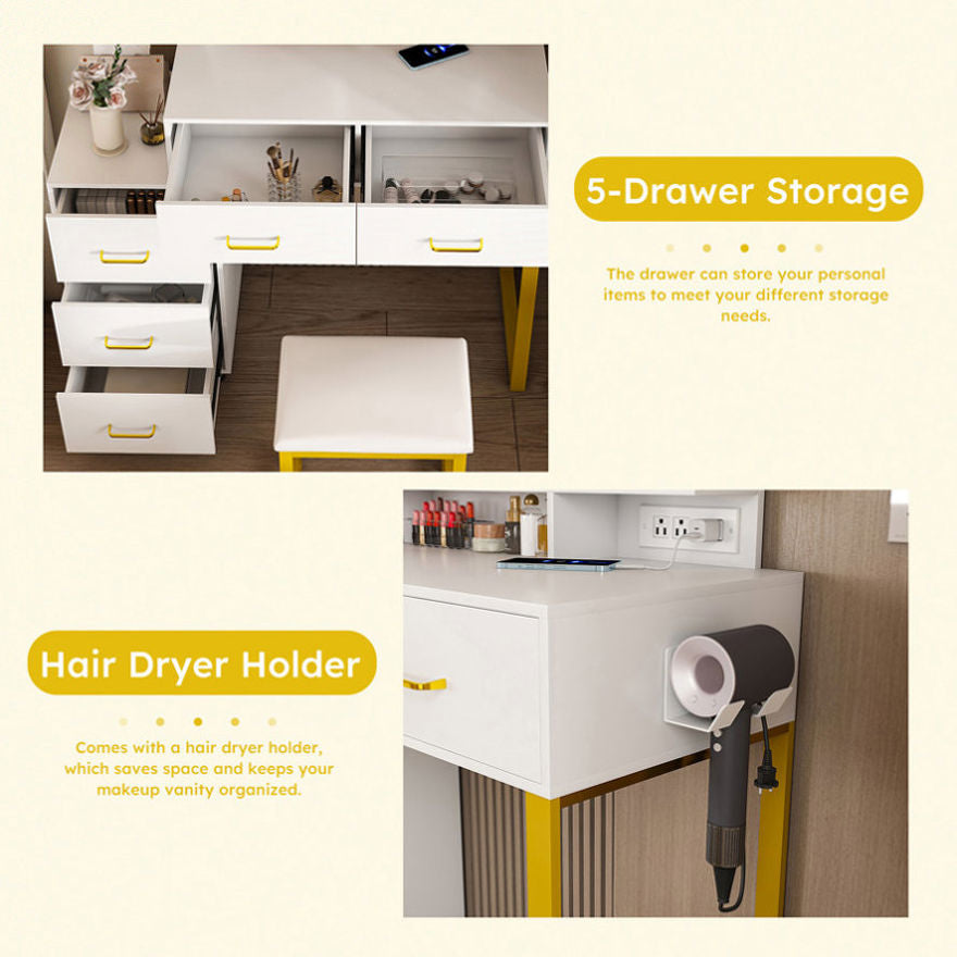 Makeup Vanity with LED Lights&3 Color and Power Outlet Makeup Vanity Table with 5 Drawers with W509P293822