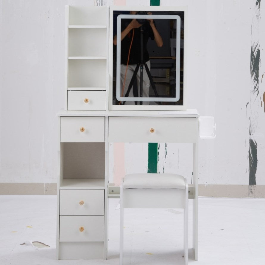 [Includes a padded dressing table stool]: The packaging includes a dressing table and a padded stool. You will no longer need to make additional purchases. This will greatly save you time and delivery cost.