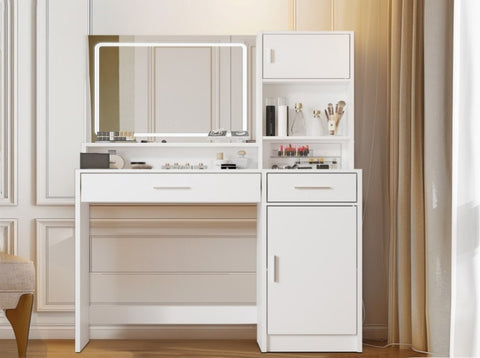 The vanity table provides sensible storage space. Specially designed cabinet doors with partitioned shelves allow for organized storage, preventing items from falling. The intuitive design enables you to quickly locate your needed items, enhancing makeup efficiency.