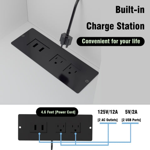 Power socket and hair dryer rack: The dressing table is equipped with a power port and hair dryer rack, making it easier to connect a hair dryer. You can also charge your phone, tablet, or other mobile devices so that you can take a beautiful selfie after applying makeup
