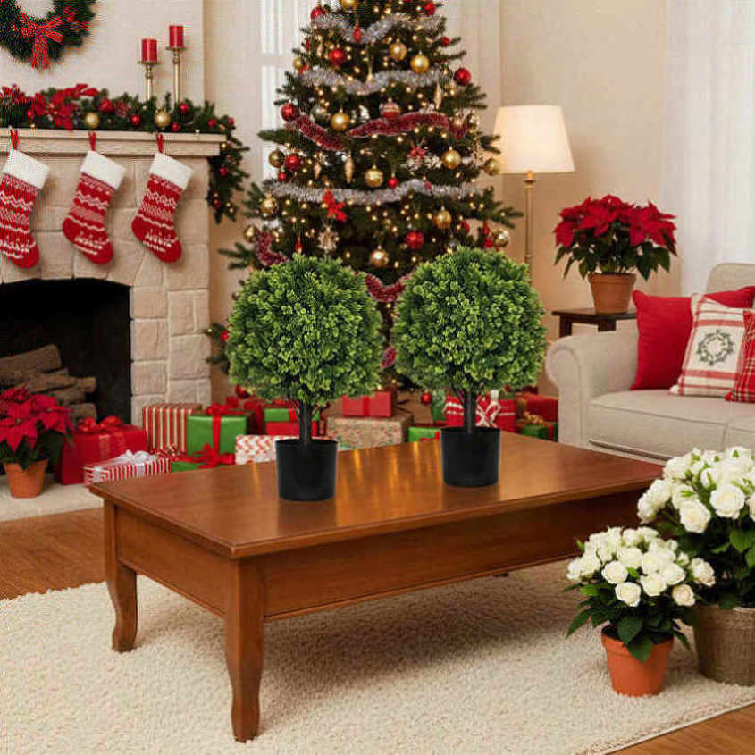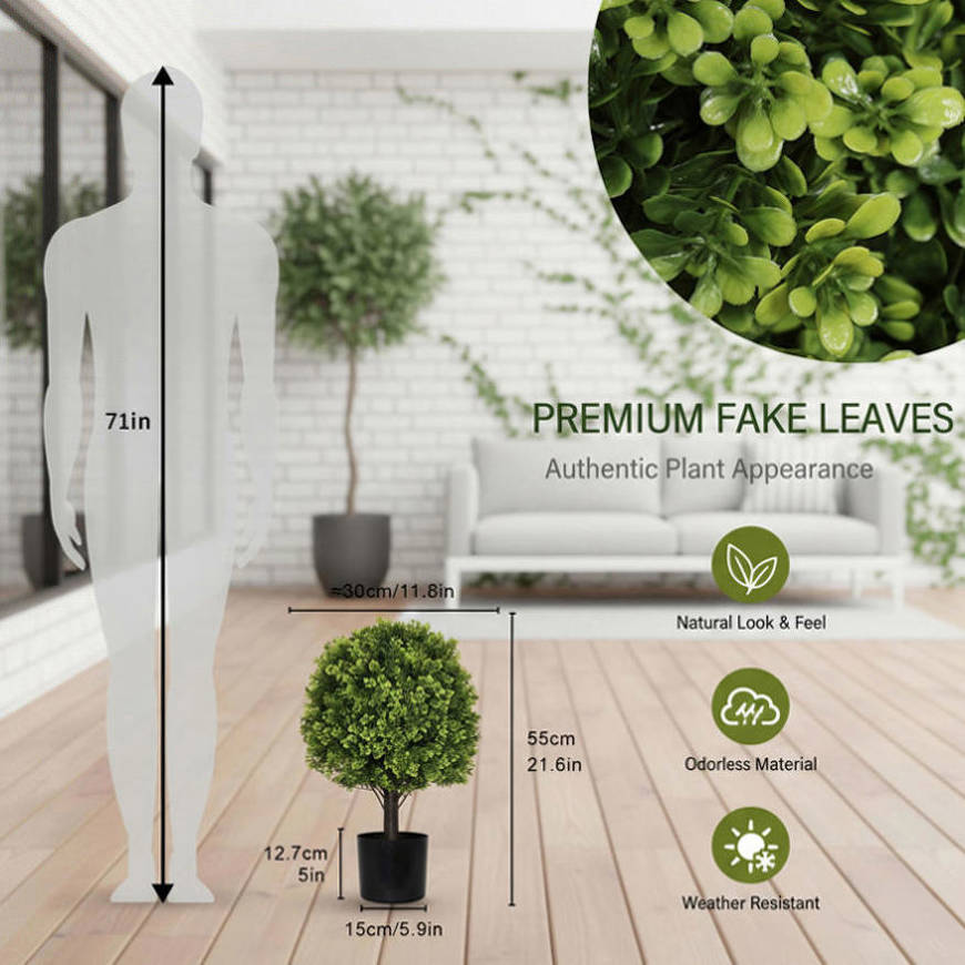 2PCS Set 22in Artificial Trees Natural Full Bodied Artificial Topiary Ball Plants for Outdoor Front 27579461