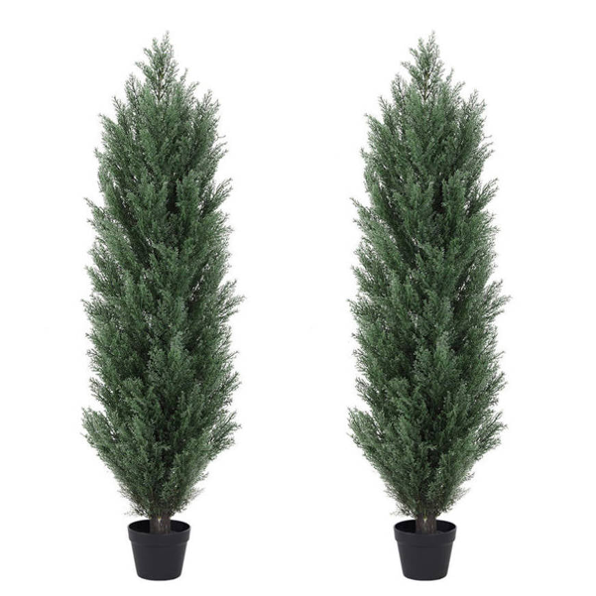 2PCS Set 4FT Artificial Plant Faux Pine Cypress Natural Plastic Faux Plant Christmas Indoor Outdoor 10305113