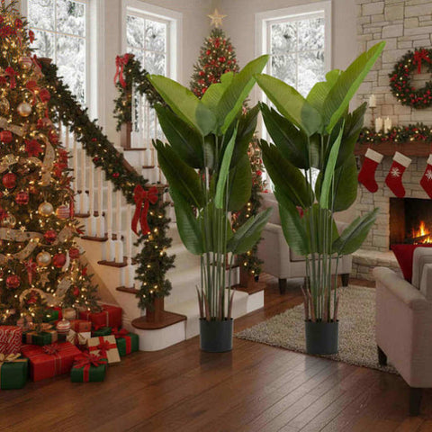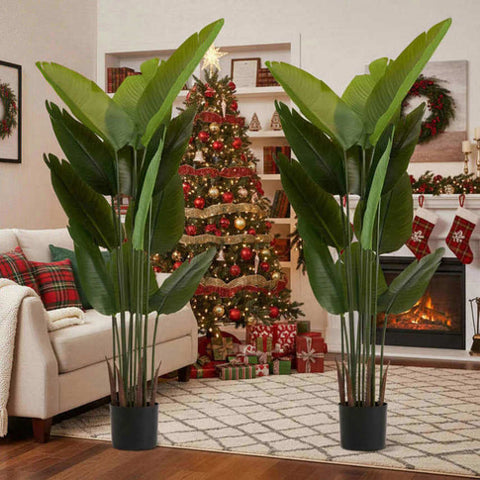 2PCS Set 5.2ft Tall Artificial Plant Faux Tropical Palm Tree in Pot Bird of Paradise Plant for 10805063