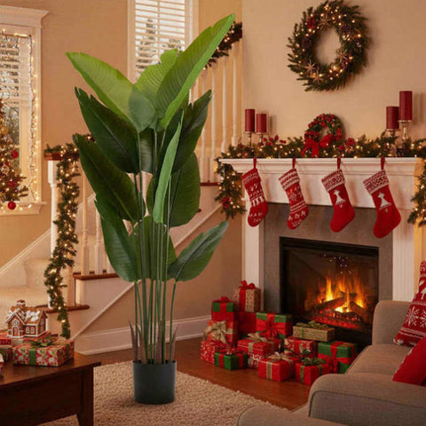 1. Vibrant & Natural:12 lush fabric leaves mimic real Bird of Paradise plants with rich green hues, adding tropical elegance to any space. Fade-resistant for lasting beauty indoors/outdoors.