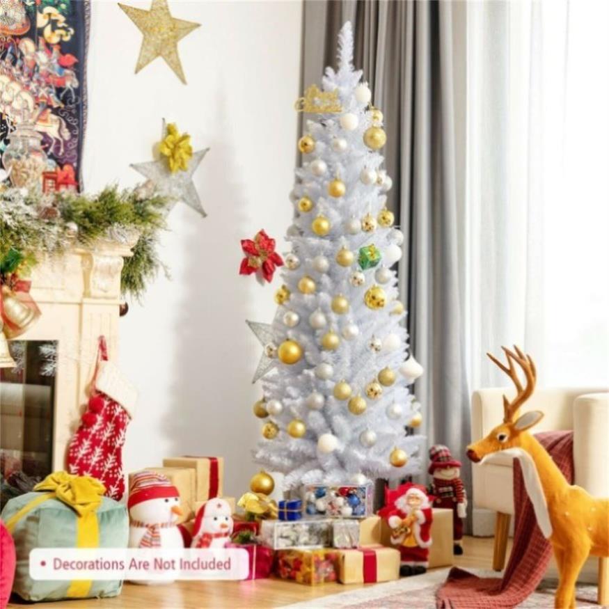 ● Terrific Festival Decoration in All Occasions: This wintry artificial Christmas tree will perfectly blend with many places, such as office, shopping mall and school. Spreading romantic vibe and holiday cheers, this white slim Xmas tree will highlight your decor in the happy Christmas party.