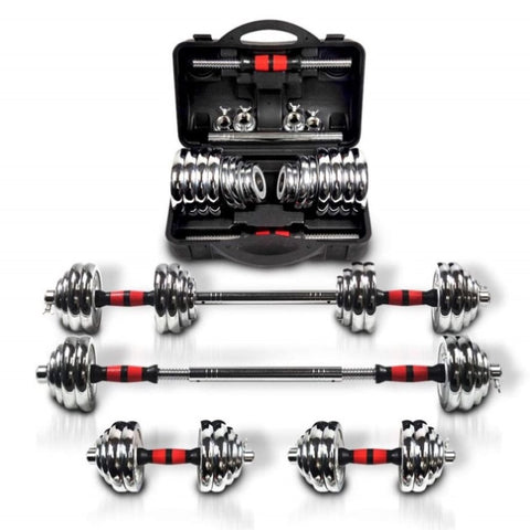 • 【2 IN 1 DUMBBELL BARBELL WEIGHT ADJUSTABLE DESIGN】This adjustable dumbbell set comes with a connecting bar that can be easily attached to both dumbbells to transform into a barbell. There are also adjustable weight plates that let you customize the weight of the dumbbell/barbell to your desired setting. This allows you to efficiently use our dumbbell/barbell set for many exercises instead of buying multiple sets