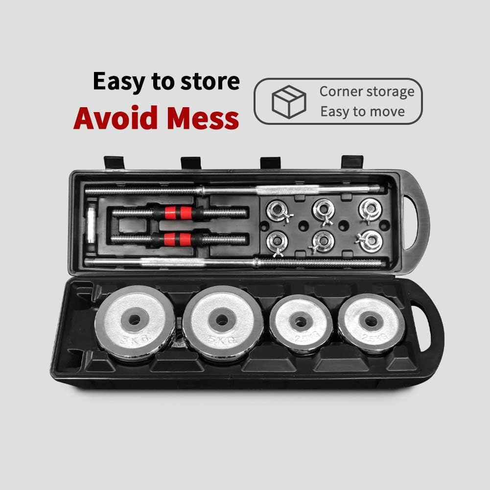 Each dumbbell handle is solid steel with upgraded curve-shaped rubber coating handles give you great control over your weights, it can give you a better grip so you can improve your coordination and avoid any injuries or accidents. This simply designed dumbbell/barbell can be used to strength train and to build your muscles in order to avoid muscle atrophy and keep healthy