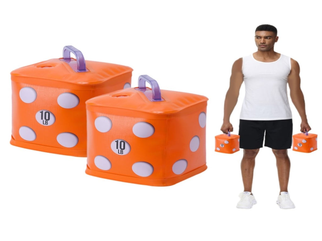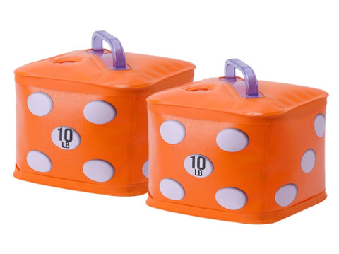 Includes 2 adjustable weights for resistance training; each holds up to 10 lbs (4.5 kg) of water, with a total pair weight of 20 lbs (9 kg).