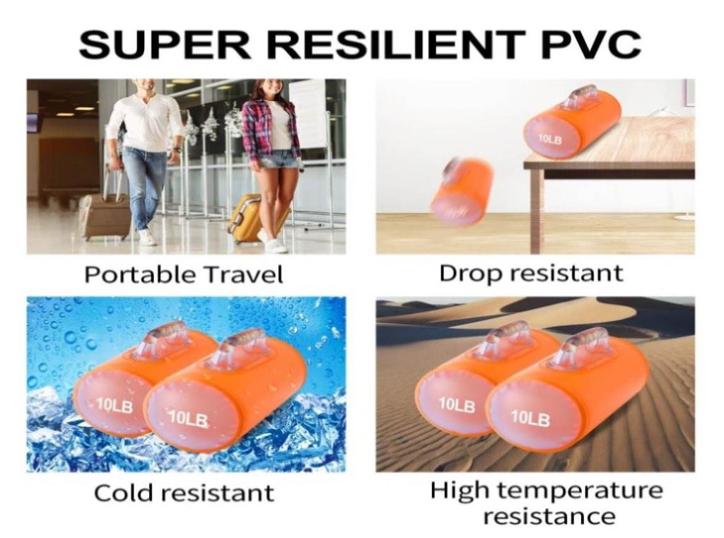 This water-fillable dumbbell set features collapsible design, allowing you to challenge your full body anytime, anywhere—no bulky or expensive iron weights needed.