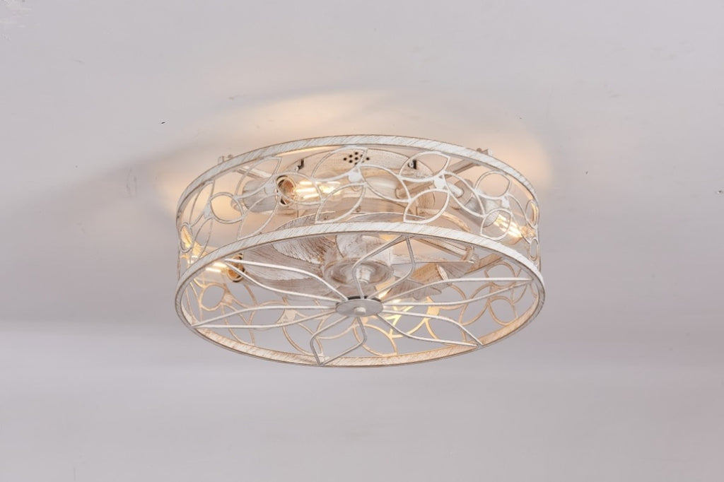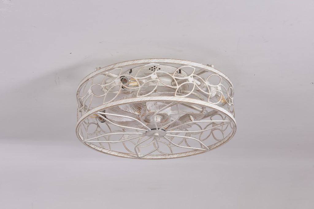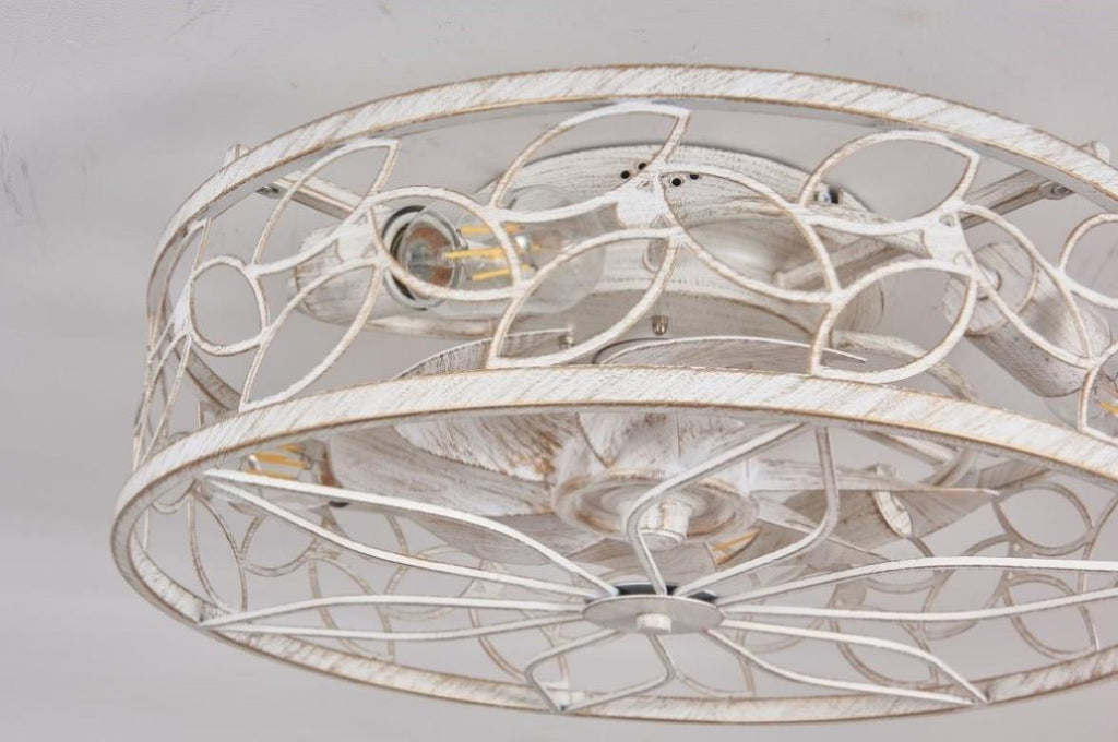 18.1-inch White Vintage Caged Ceiling Fan Light – Quiet Operation, Remote Control, Industrial Style