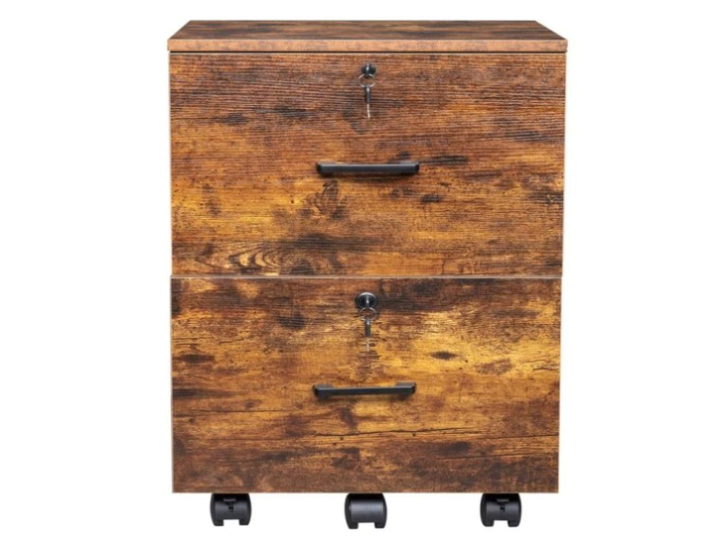 2-Drawer Rolling Wood File Cabinet with Lock, Brown & Black 75474004