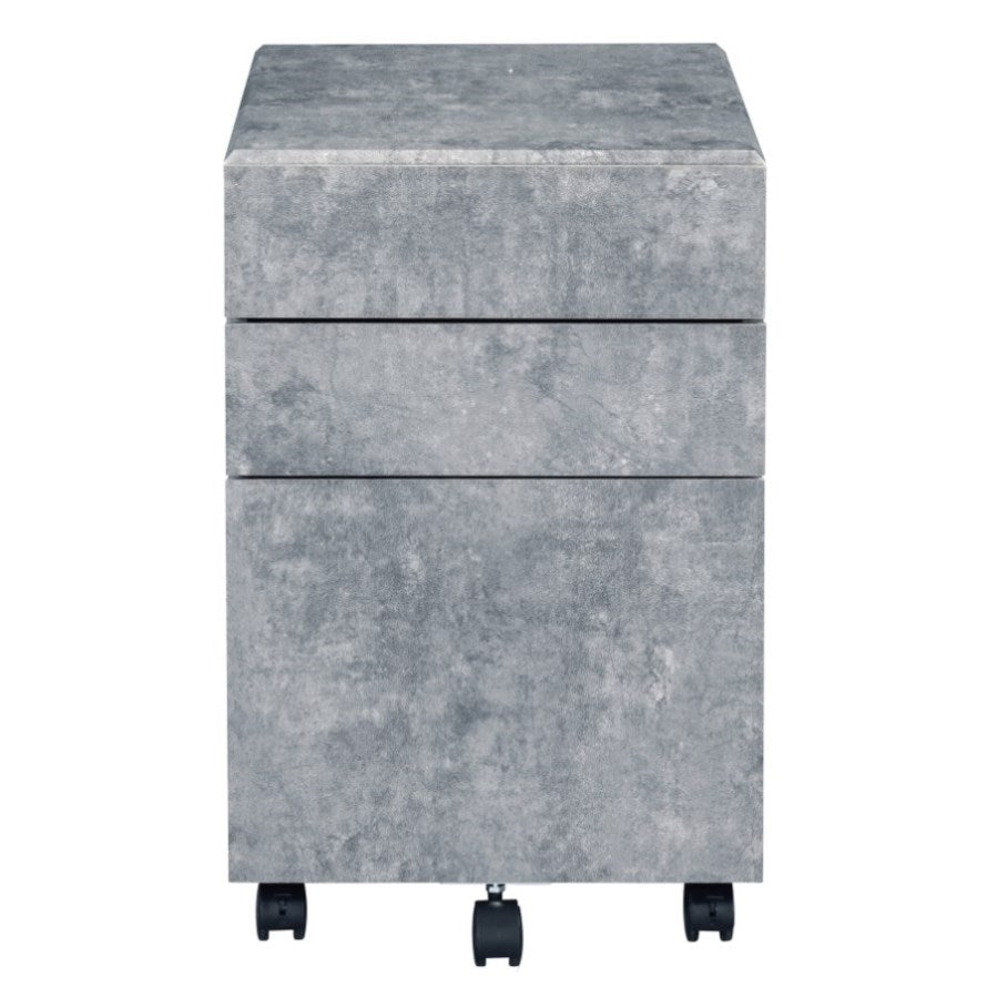 File cabinet boasts a stylish faux concrete finish, adding an industrial-inspired touch to your office or home workspace