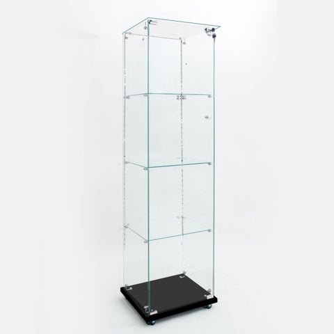 Tempered Glass Display Cabinet: Measures 65.00" (H) x 15.67" (L) x13.58" (W), with an overall weight capacity of 110 lbs, each tempered glass shelf can hold up to11 lbs,Color: Black