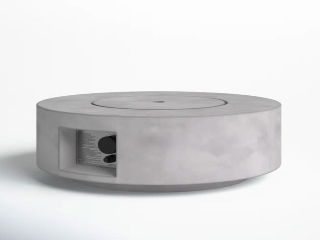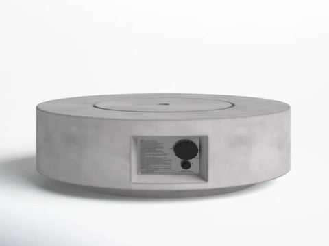 With a streamlined, rounded silhouette and versatile design, this outdoor fireplace keeps your patio or deck warm even on cool nights– while also complementing a streamlined, modern look. Crafted from weather-resistant reinforced concrete, it features a clean-lined round design for a simple, function-forward silhouette. This fire pit ignites with a push-button trigger, and features included lava rock filler, so it's ready to be turned on once it arrives. It accommodates both propane and natural gas and has a concealed compartment for a tank with an easy-access door. What's Included Filler Lid Cover Features External gas tank Suitable for year-round exterior use