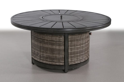 Turn any chilly evening into a cozy warm night by huddling around the Cassara resort wicker propane fire pit table. With a beautiful wood, grain fire put tabletop (hand-painted aluminum) without having to compromise on looks. Access the propane tank through a sliding door mechanism, as the propane tank is internal and completely hidden. This high-end, resort-grade fire pit is made from durable strands of wicker incorporating a stunning assortment of a variety of shades, the fire pit collection is an ultimate showstopper that will enhance the look of any outdoor living space. These fire pits are a winner when entertaining guests in your backyard and enjoying outdoor living. Not Included: *Cover Features ETL certified for use with a 20 lbs propane tank Push-button ignition for easy use