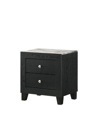 1pc Contemporary Modern White Faux Marble Top 2 Drawers Nightstand Black Finish Bedroom Furniture B2741P330120