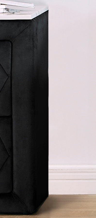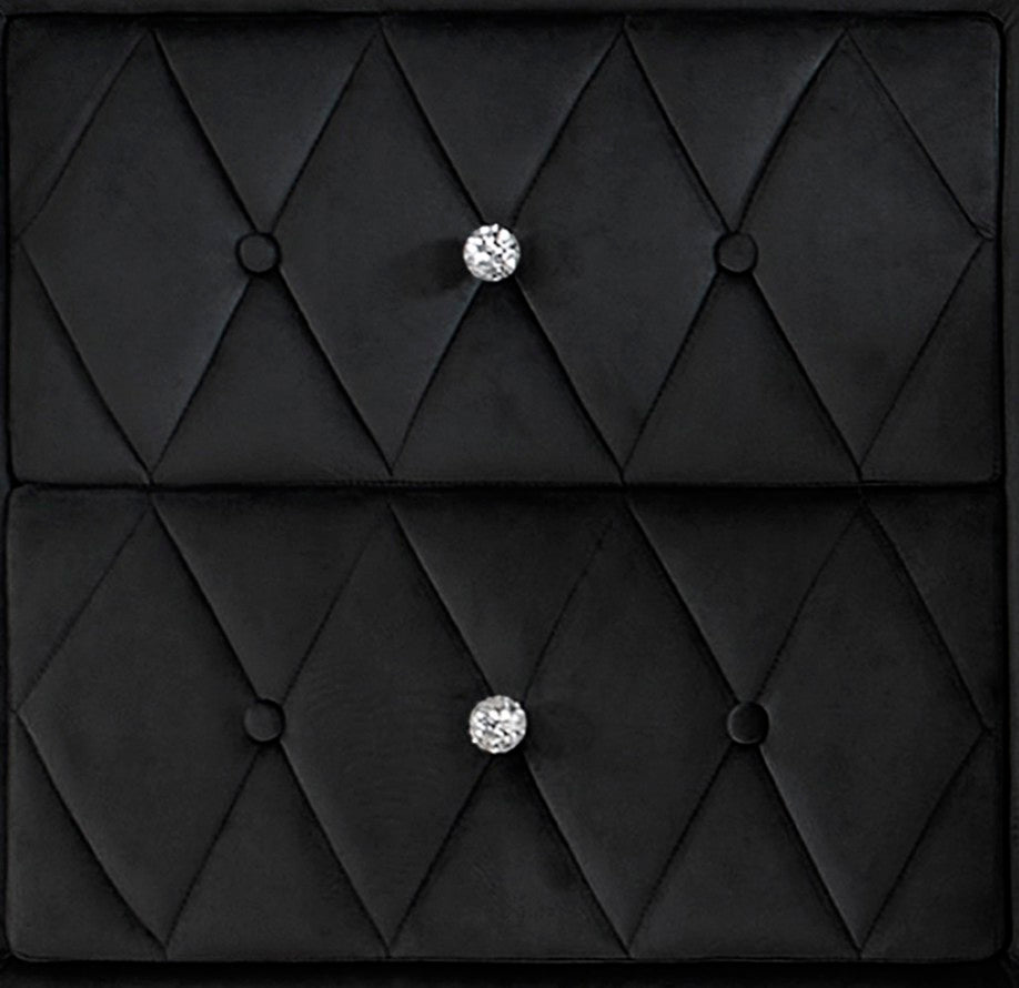 Description:-This Nightstand is a sleek and modern piece, featuring a black finish that adds elegance to any bedroom. It offers two spacious drawers for storage, decorative metal knobs, and a sturdy build for lasting durability.