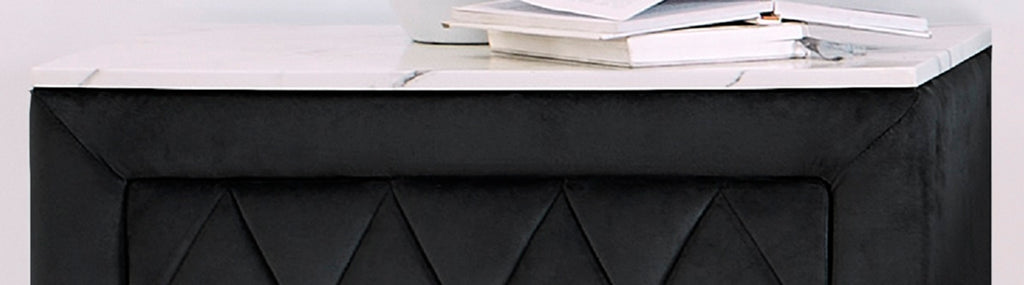1pc Faux Marble Top Nightstand 2- Drawers Storage Gray Finish Button Tufted Faux Crystal Tufted B011P265734