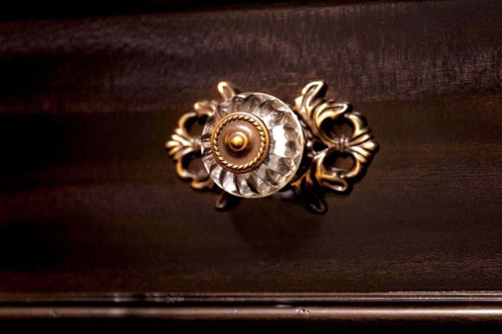Bronze Drop Hanging Pulls and Crystal-like Knobs