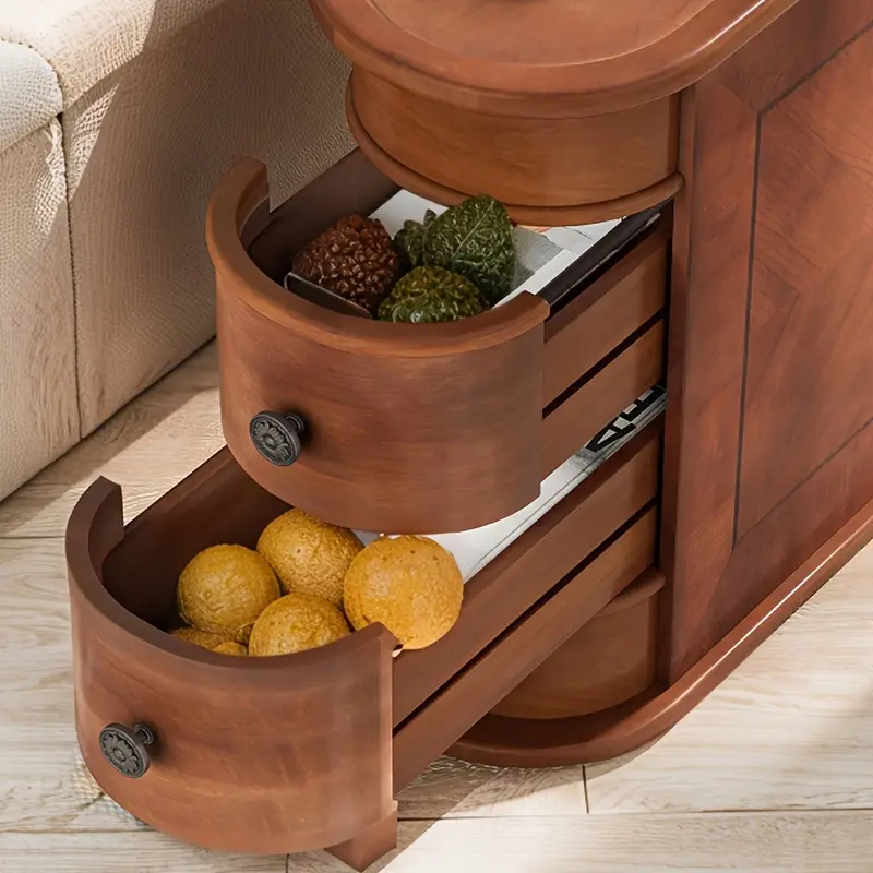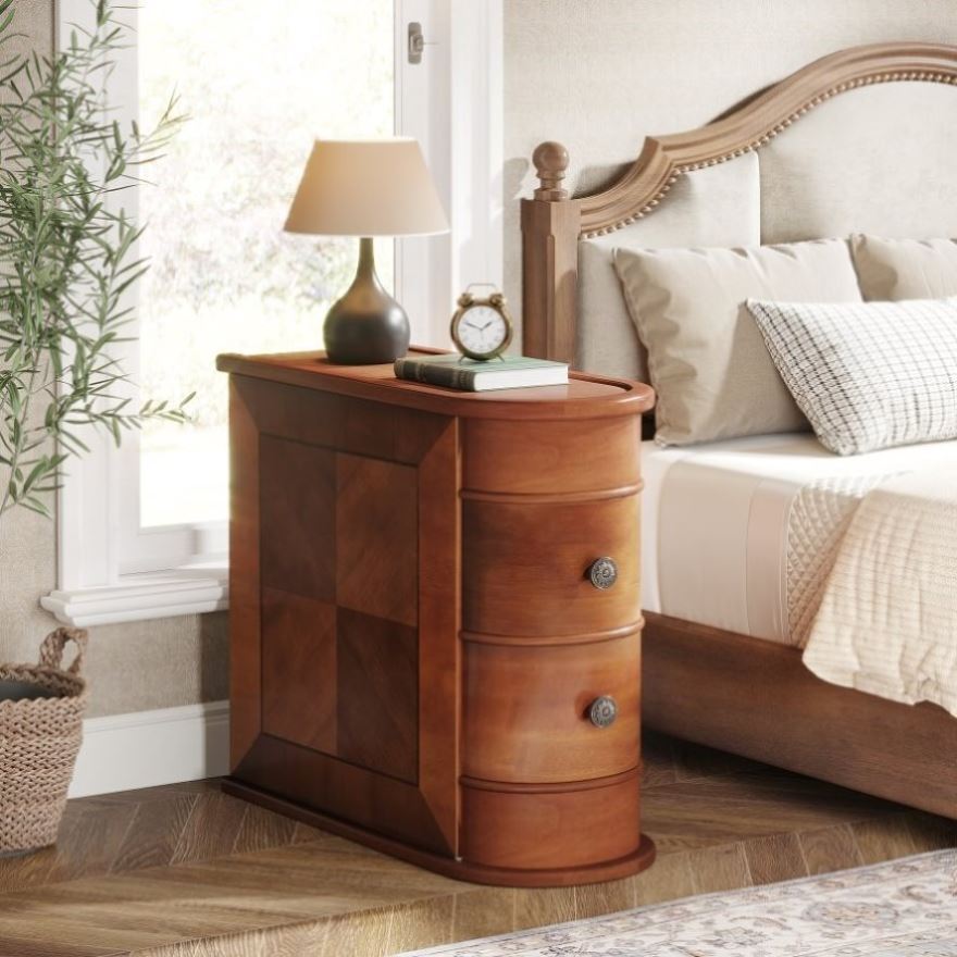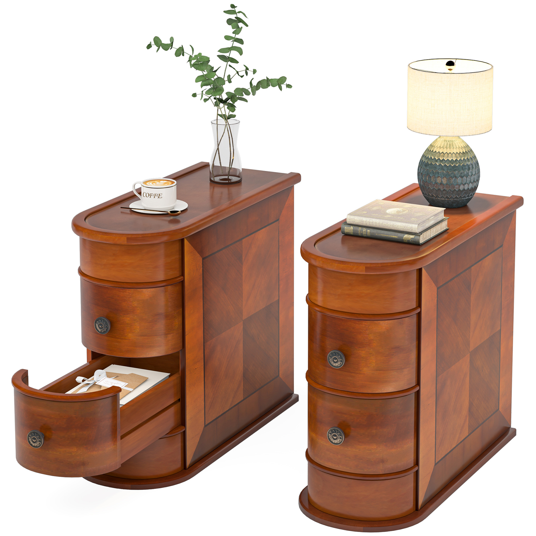Classic and Vintage Style - In Early American brown, our side table adds a vintage touch to any decor. Its smooth, easily cleaned surfa, clear texture, and arc design make it elegant, exquisite, and safe for children.