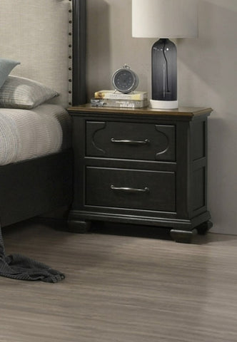 1pc Traditional 2-Drawer Nightstand Wooden Bedroom Furniture Gray Brown Finish Metal knobs B011P218285