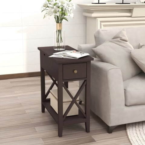 2-Drawer End Table, Flip Top Narrow End Table with Drawer, Accent Side Table Nightstand for T3771P356737