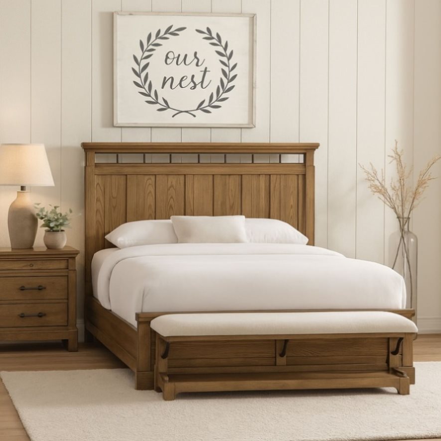 Built with clean, framed panel drawer fronts and corner block feet that enhance its farmhouse-inspired charm
