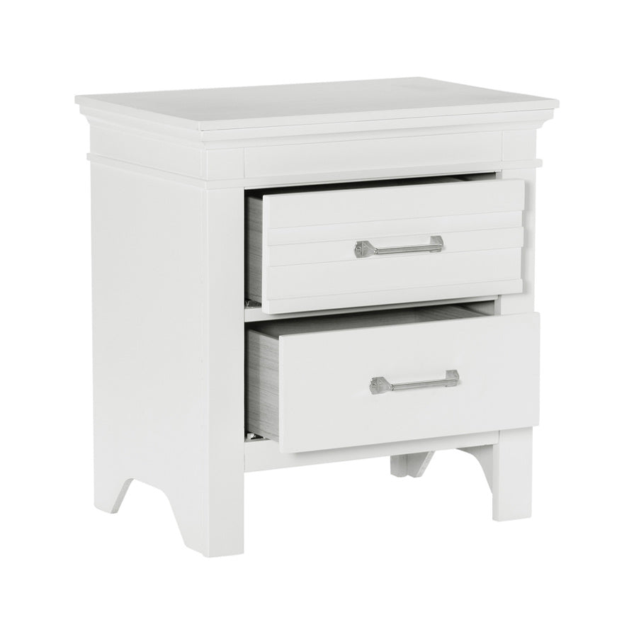 The transitional styling of the Blaire Farm Collection serves as the perfect complement to the rustic aesthetic that inspired the design. Fixed handle pull hardware fronts the drawers while horizontal accent at the top drawer lends visual contrast. The white finish that covers the night stand lends to a versatile look sure to be a perfect fit in your home.