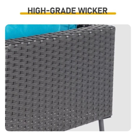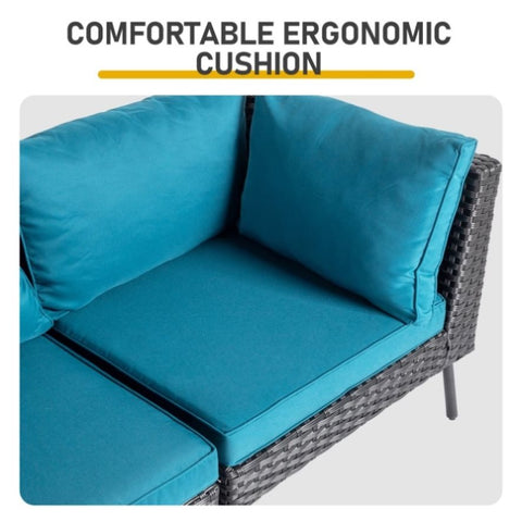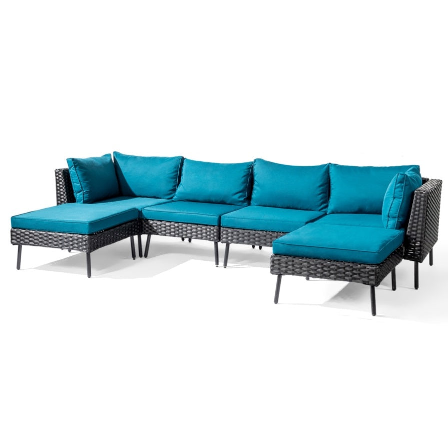 2 pcs armless sofa 2 pcs corner sofa 2 pcs footstool iron legs black rattan peacock green 72293141