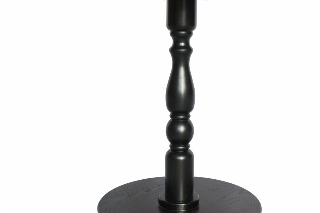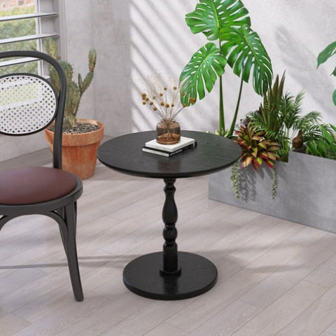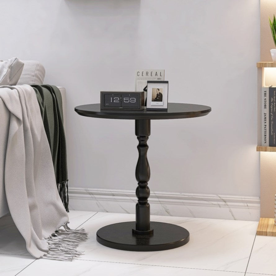 Round Side Table: The side table features a distinctive pattern and a black color, which creates a stylish and classic appearance. The rounded tabletop makes it safer, and its leg utilizes wooden balls as connectors, adding an elegant touch. It is the ideal choice for minimalist furniture, enhancing the ambiance of your room