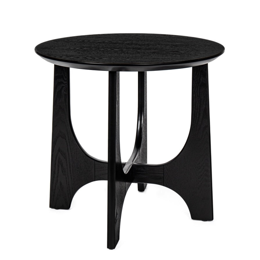 The brushed black finish makes the texture of the tabletop visible and adds texture to its modern look.