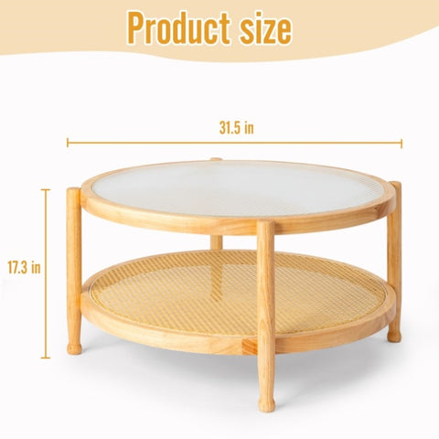 Elevate your interior or exterior decor with the natural elegance of this 31.5in Rattan Coffee Table. Featuring a spacious round tempered glass top with a unique water ripple design, this table blends artistic charm with everyday function. The hand-woven rattan shelf underneath adds texture and warmth, giving your space a relaxed boho vibe. Perfectly suited for both indoor and outdoor use, this end table works beautifully beside a sofa, bed, or lounge chair, bringing stylish convenience to your living room, bedroom, balcony, patio, or office.