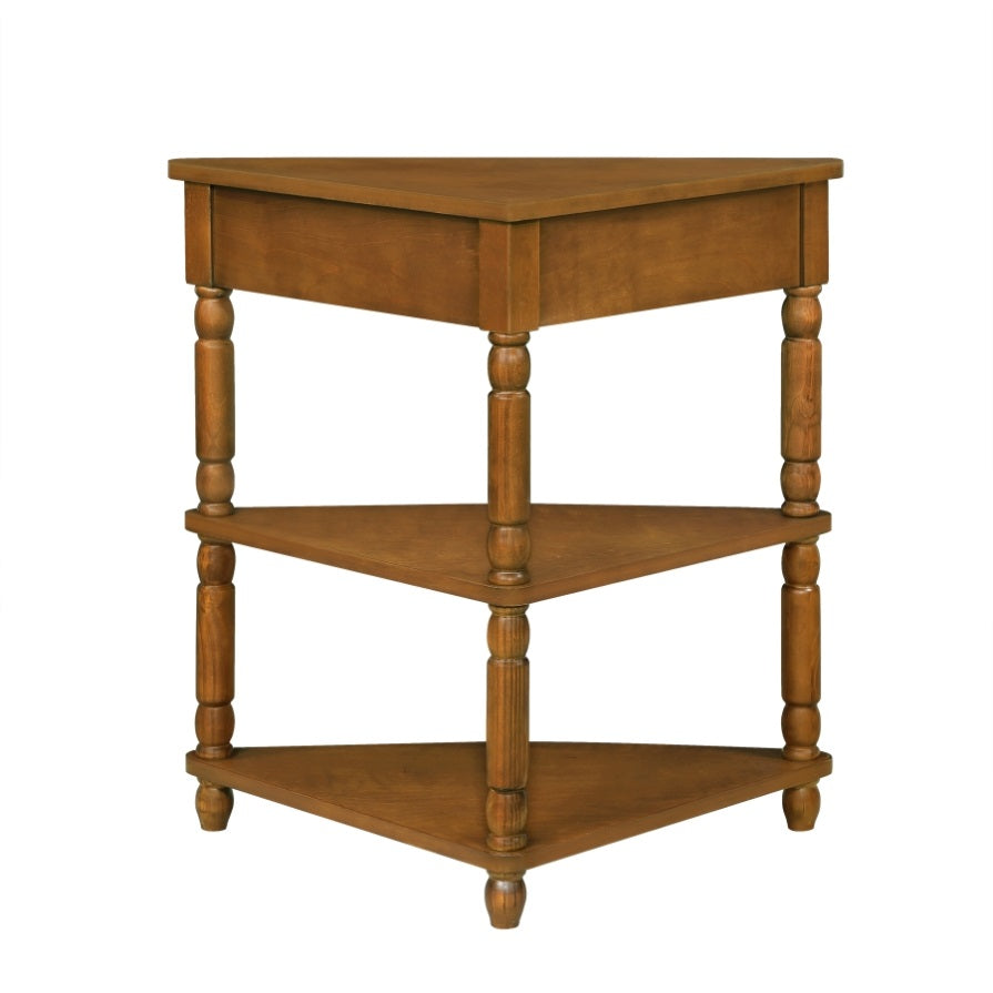 Sturdyand stable solid wood legs ensure that this corner table last long enough and your daily storage needs are met. The top can hold up to 88 pounds, and the single shelf can hold up to 55 pounds to free up more space. The capacity of drawer is 17 LBS.