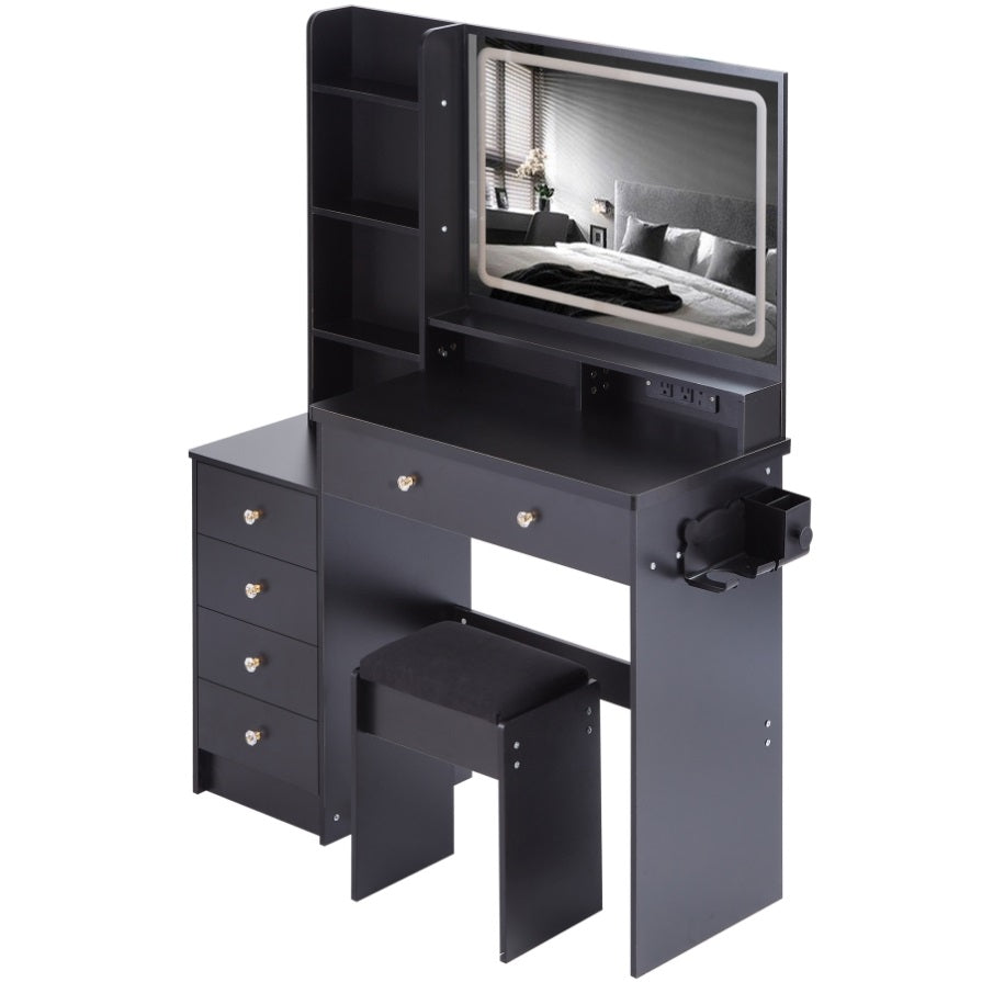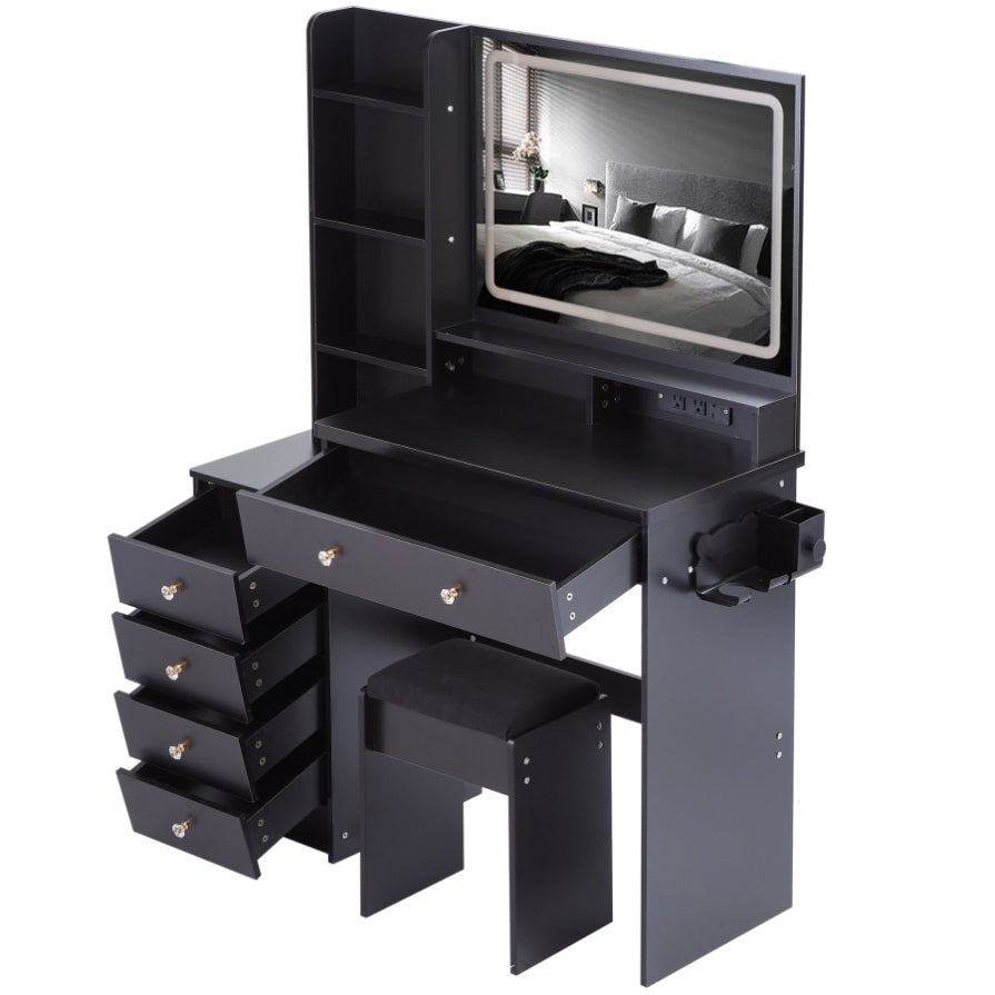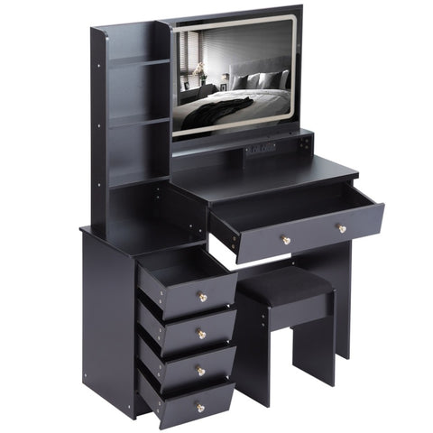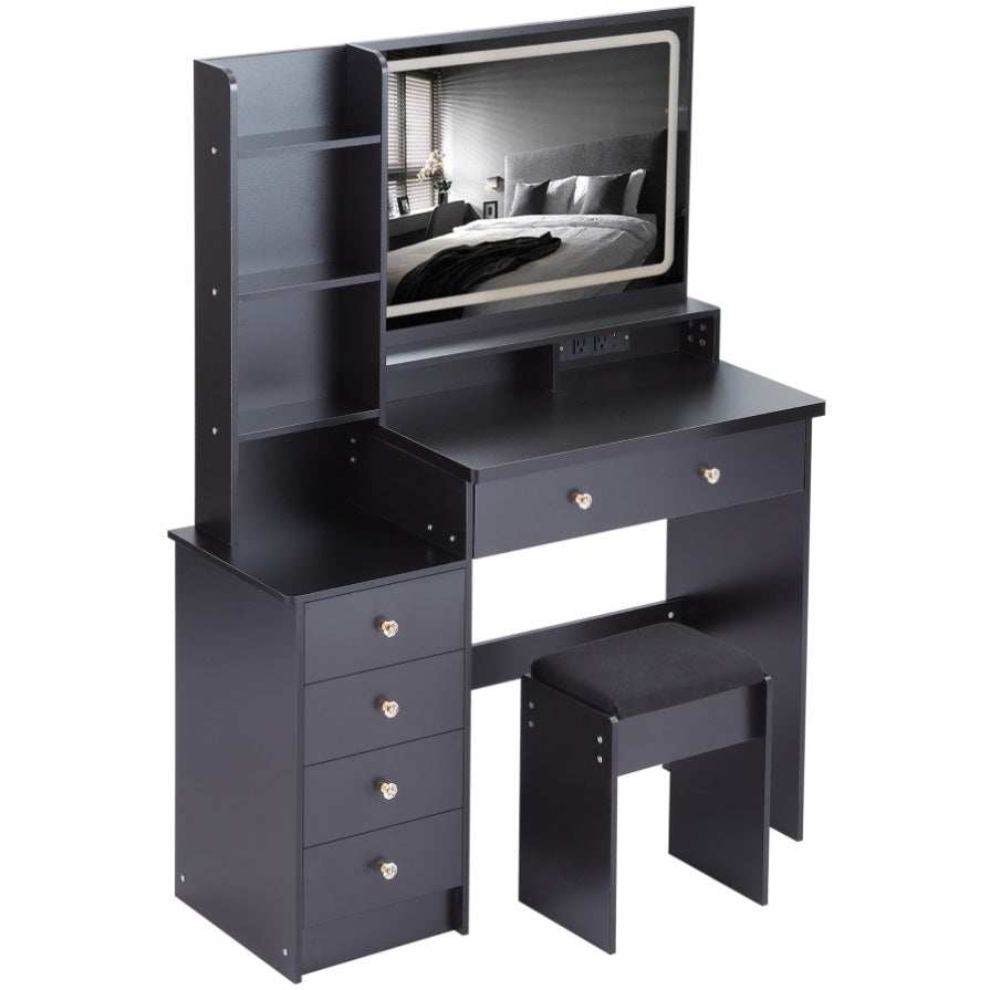 Introduction:  This product was designed by outstanding graduates from the renowned Parsons School of Design in New York, and has won an award in the American Fast Fashion Home Design Competition. It has been granted design patent protection in the United States. Certified by EPA, GCC, and UL.   Including:  1 x dressing table 1 x dressing stool 1 x Installation instructions