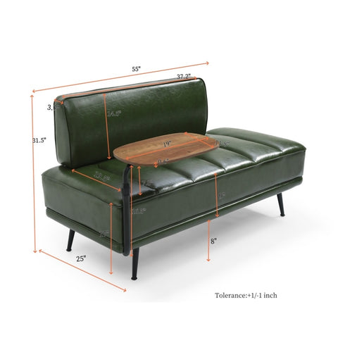 55"Inch Width Modern End of Bed Bench,Green Faux Leather Upholstered With side table, 360-degree W2677P196638