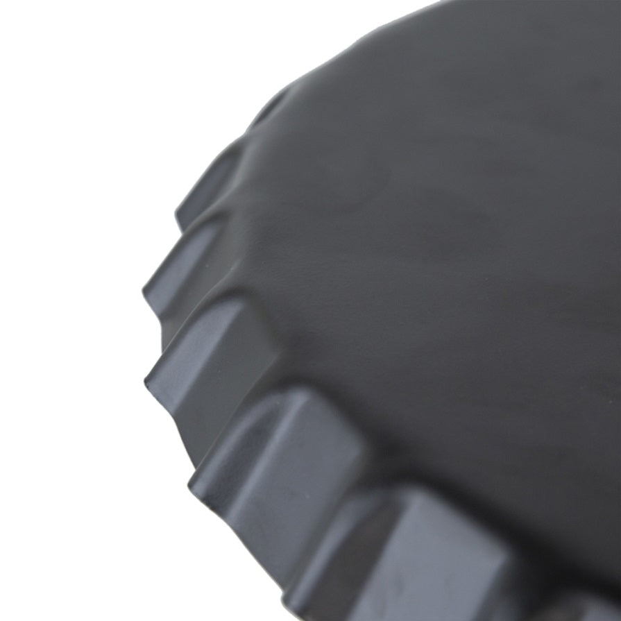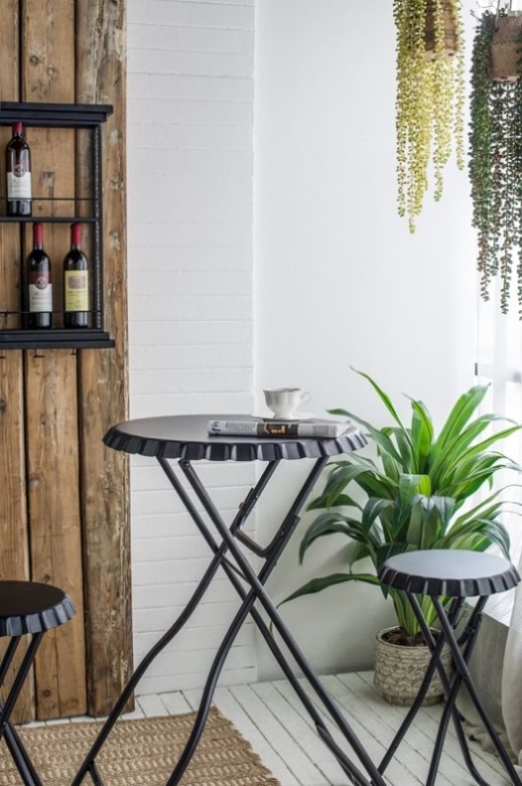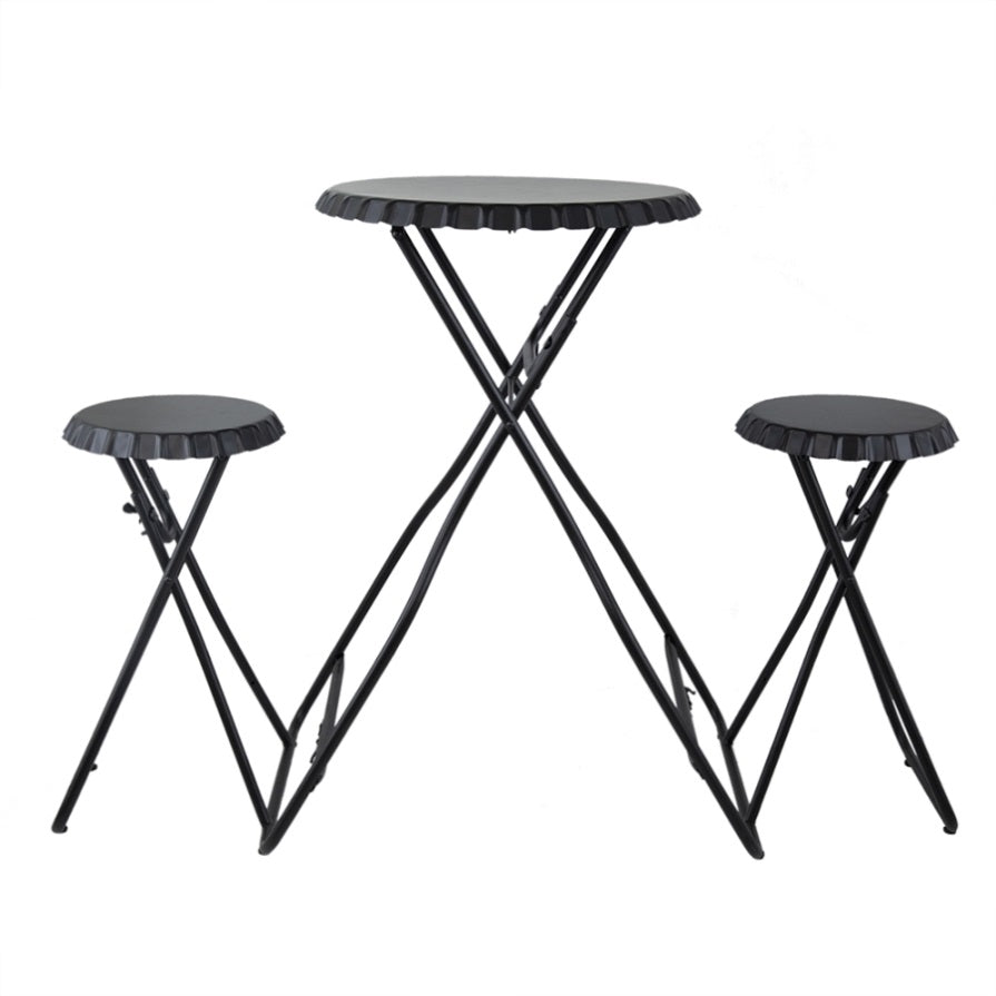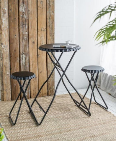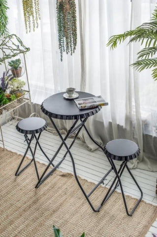 Blending a striking black hue with an intriguing industrial design, this side table and seating set offers multiple ways to enhance your home decor.