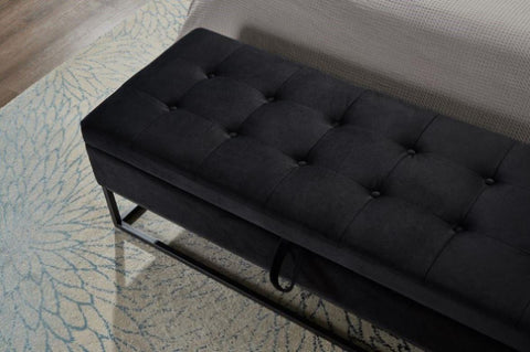 58.6" Bed Bench Metal Base with Storage Black Velvet W1097119560