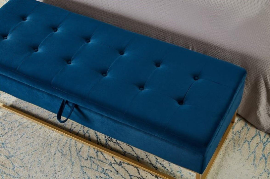 58.6" Bed Bench Metal Base with Storage Navy Blue Velvet W1097119561