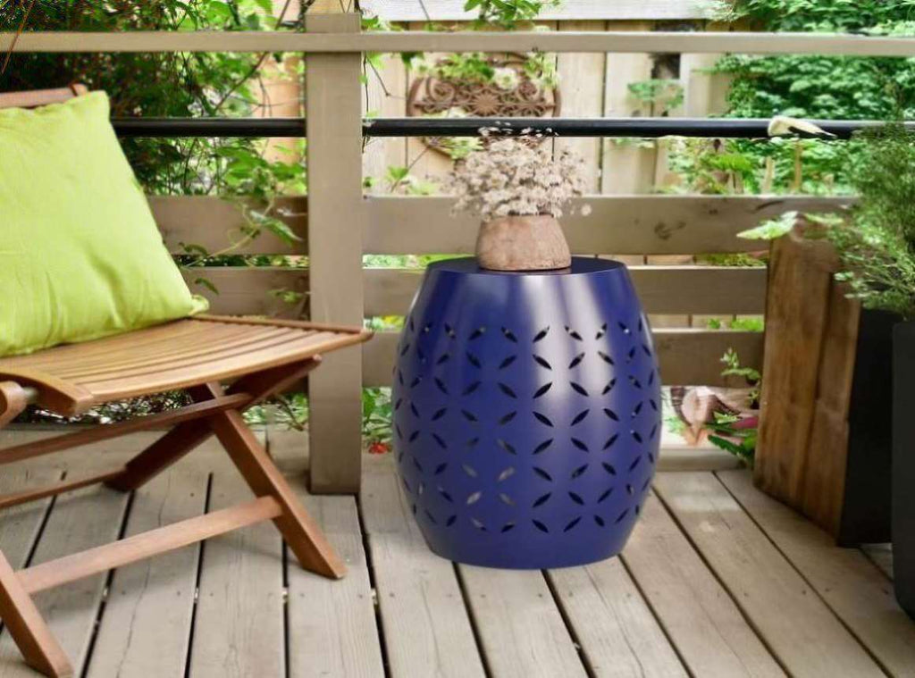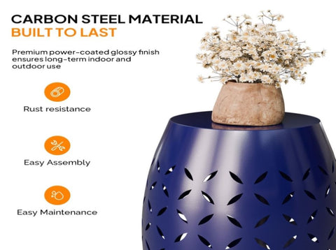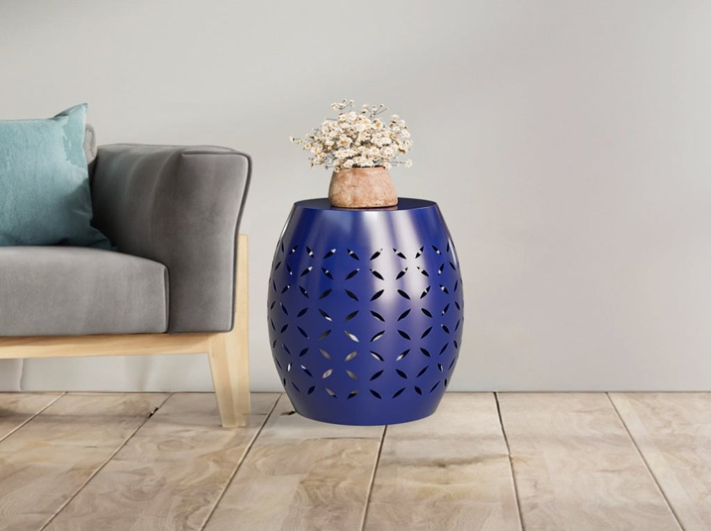 9.4" Steel Patio End Table, Round Hollow Drum Side Table, Accent Table for Indoor and Outdoor, Blue 21472305
