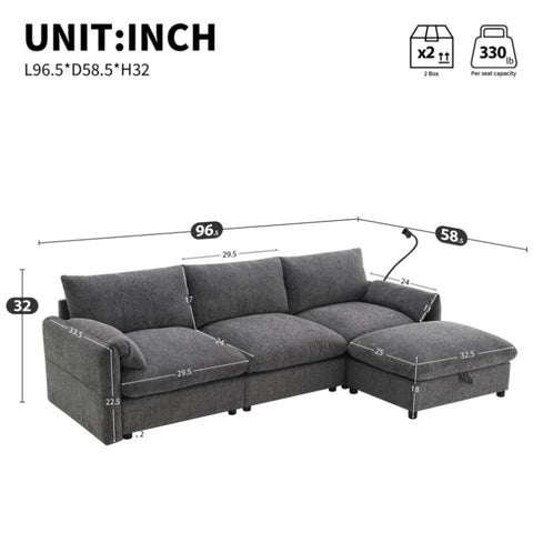 Oversized Multifunctional Storage Ottoman: The sofa features an exceptionally large 32.5-inch ottoman that offers both comfort and practicality. This multifunctional piece can be used as a footrest or extra seating while also providing hidden storage space. It’s perfect for stowing away blankets, books, or other essentials, helping to keep your living area tidy and organized.