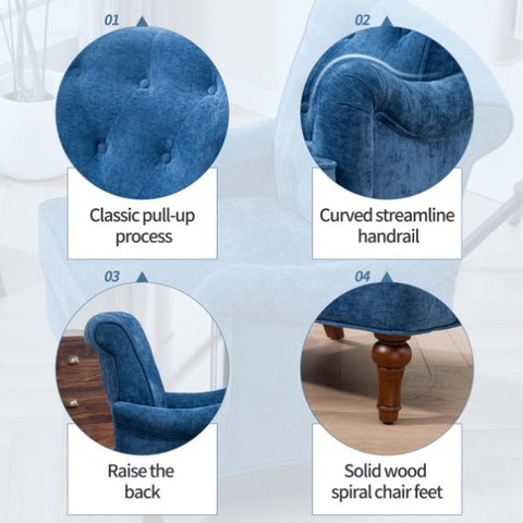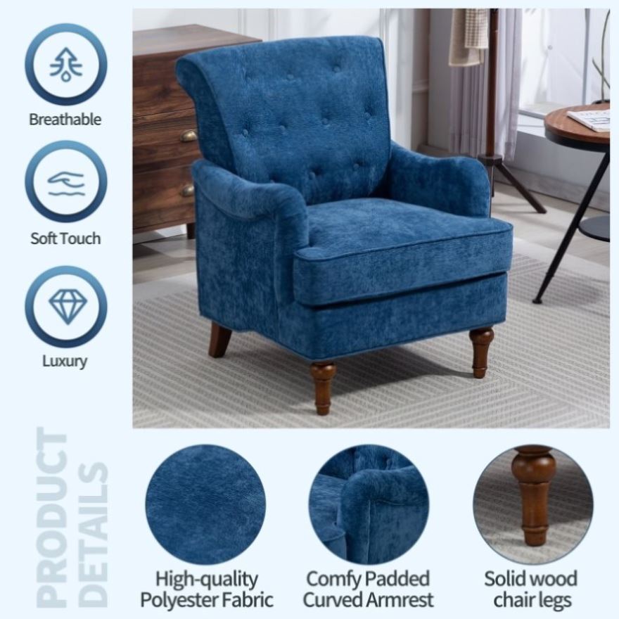This accent armchair is filled with a high-density thick sponge and spring pad to provide maximum comfort and support, allowing you to rest in a comfortable seat and not easily deformed after prolonged use. High quality polyester fabric, delicate touch, no irritation to sensitive skin, long-term use is still as new.